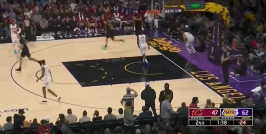 虎扑04月01日讯 今日NBA常规赛,湖人对阵骑士。比赛第二节,拉拉维亚强硬杀入禁区,面对阿伦送上单臂隔扣。来源:虎扑虎扑04月01日讯 今日NBA常规赛,湖人对阵骑士。比赛第二节,拉拉维亚强硬杀入禁区,面对阿伦送上单臂隔扣。来源:虎扑
